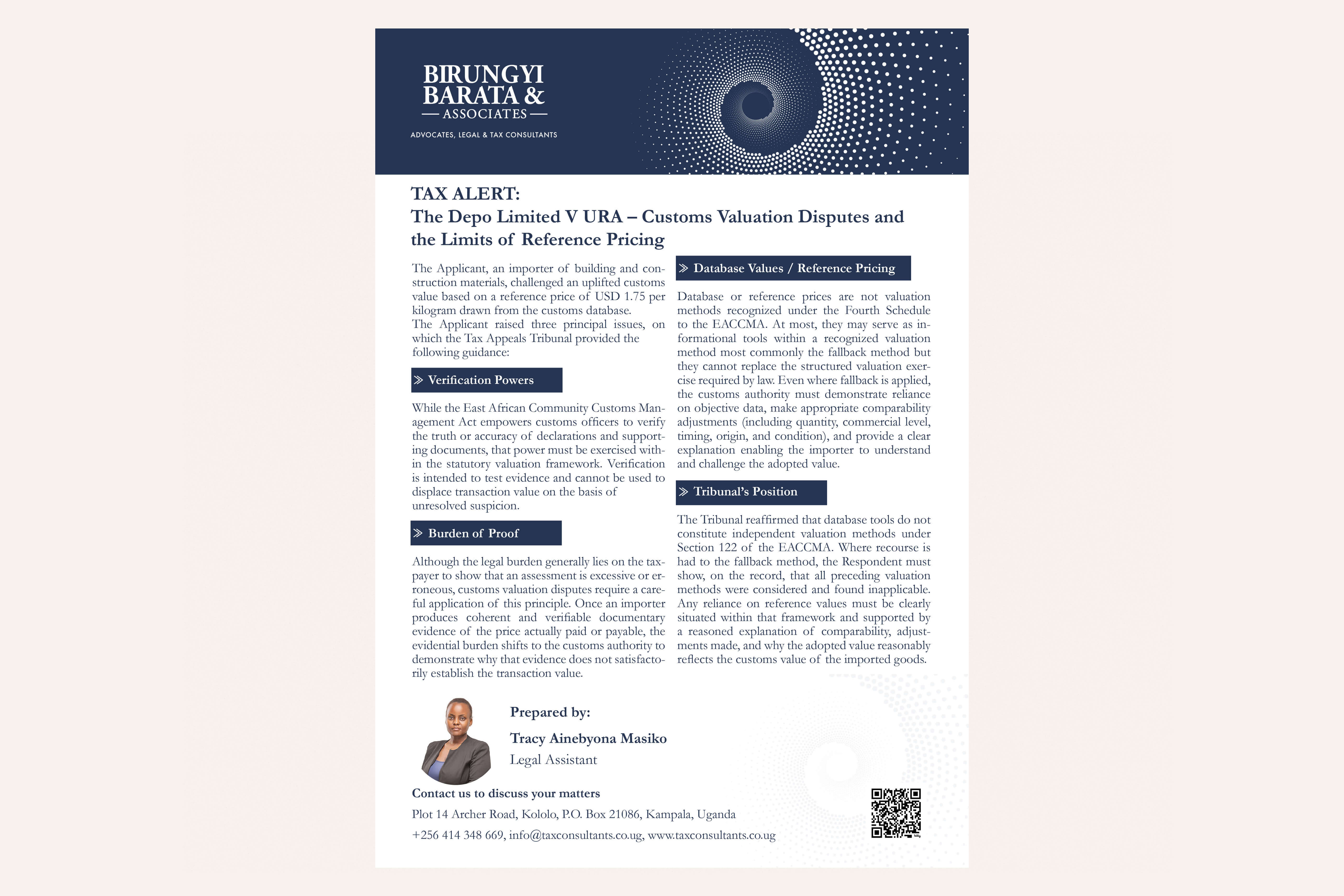 Birungyi, Barata & Associates is a leading law firm in Uganda with extensive experience in taxation and legal advisory.