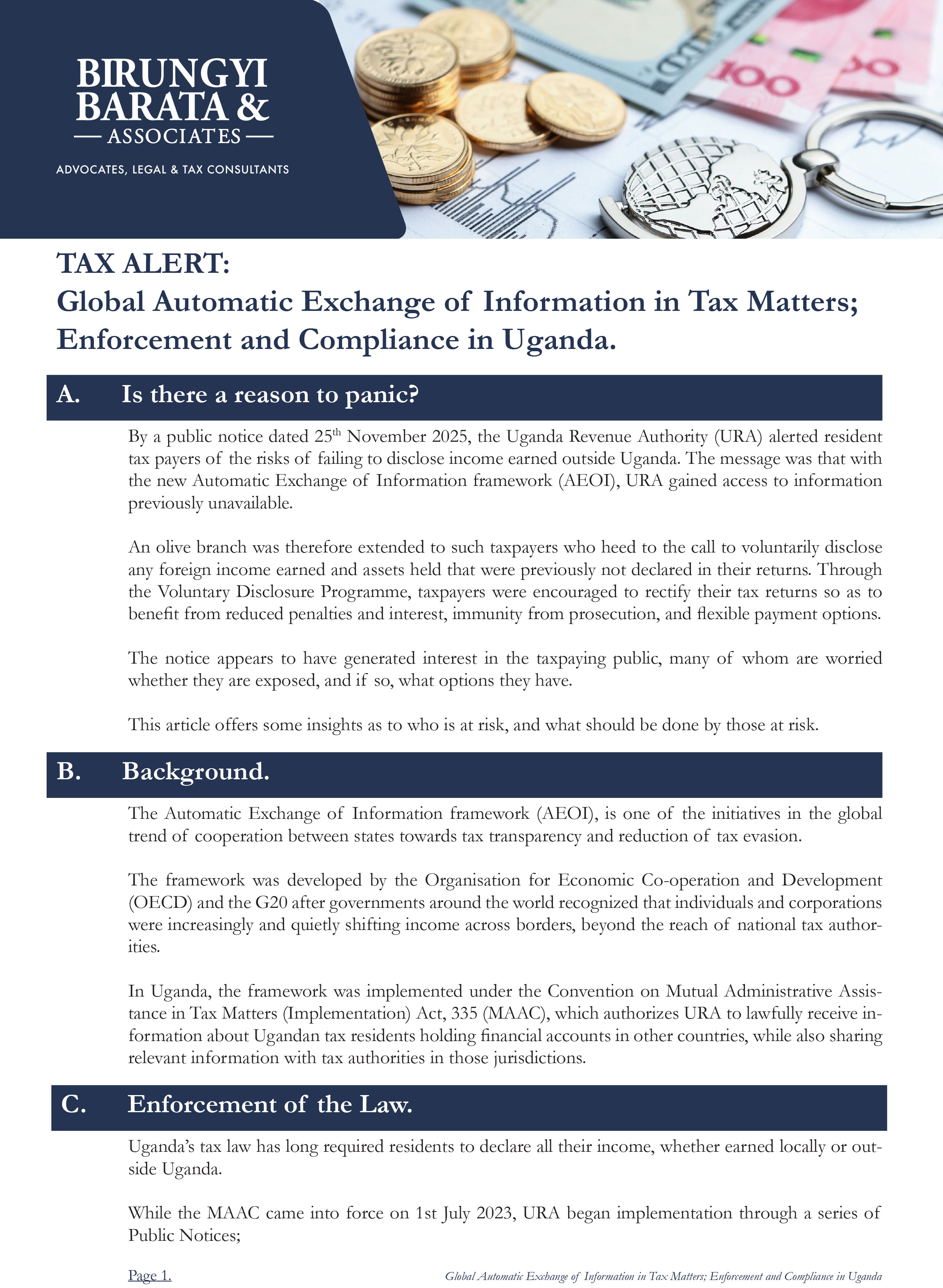 Global Automatic Exchange of Information in Tax Matters; Enforcement and Compliance in Uganda