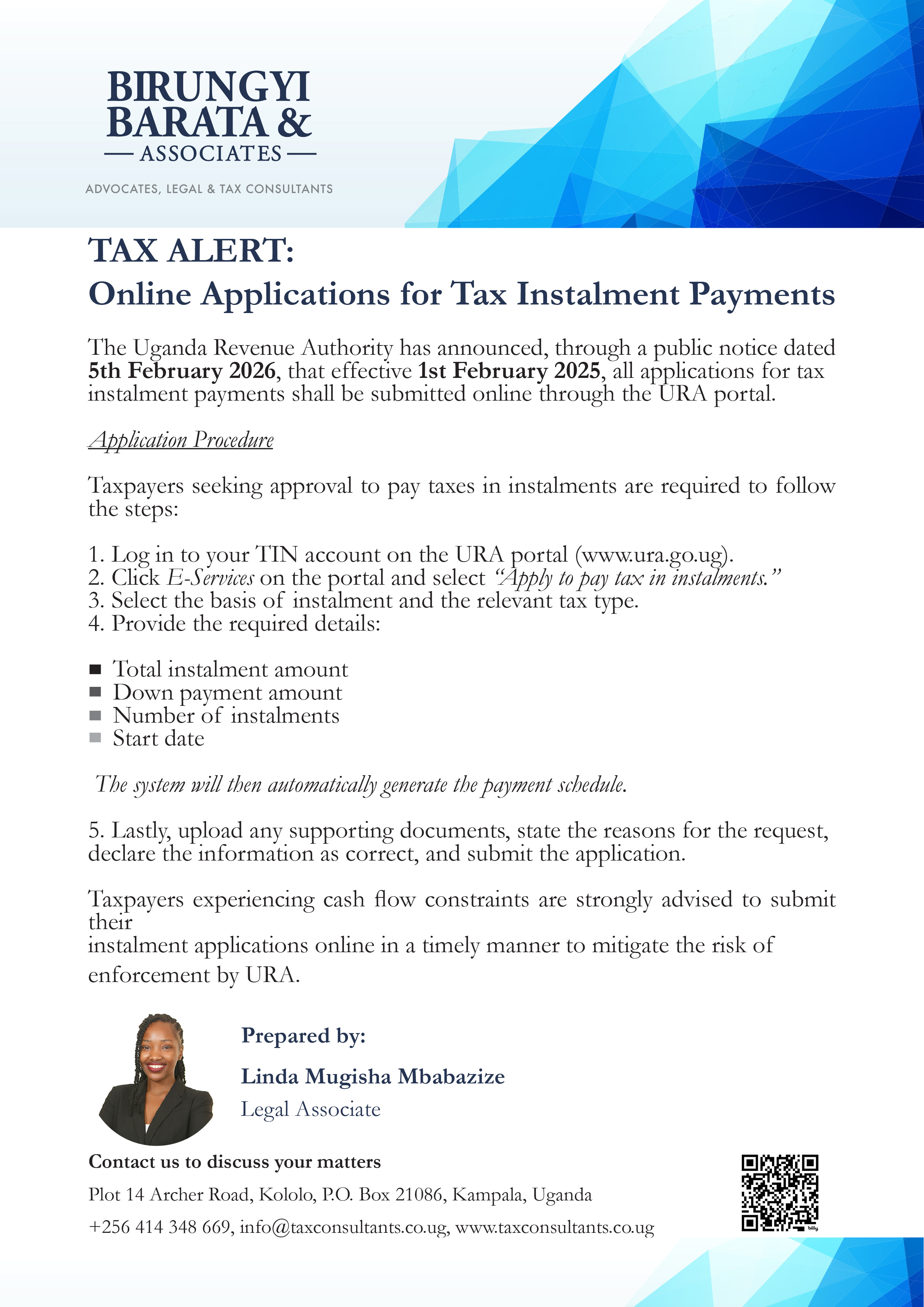 URA Guidance to Taxpayers on Online Application for Payment of Tax in Instalments