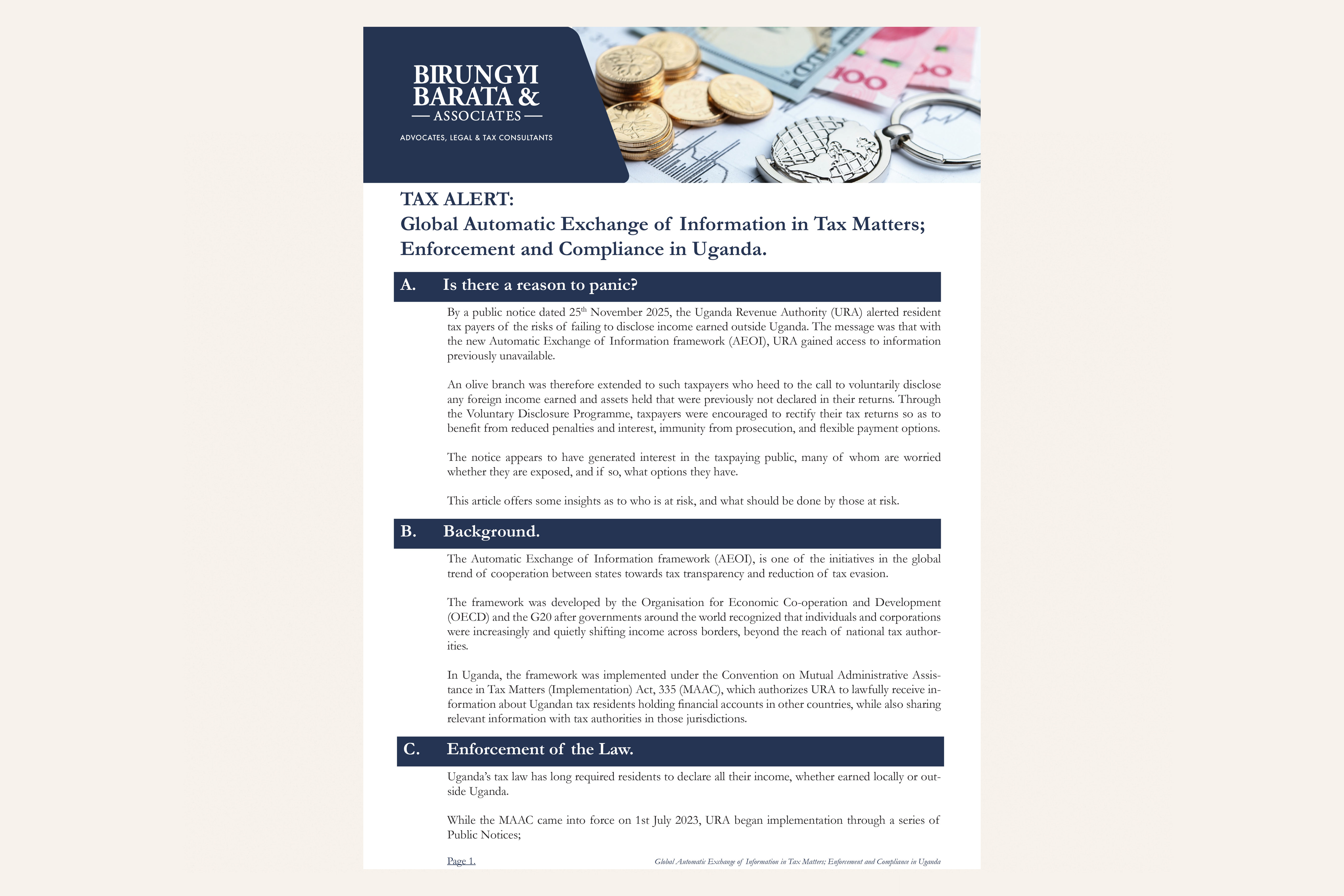 We invite you to continuously visit this page regularly to stay informed, explore new ideas, and gain insights into Uganda’s evolving tax environment. Whether you are operating locally or internationally, Birungyi, Barata & Associates remains committed to providing clear, strategic, and progressive legal advice you can rely on.